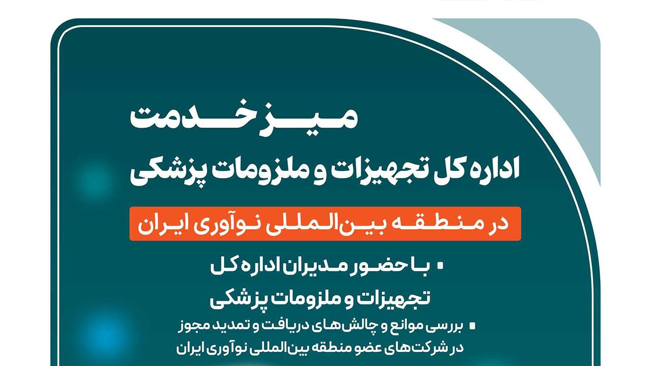 میز خدمت اداره کل تجهیزات و ملزومات پزشکی در منطقه بین المللی نوآوری ایران برپا می شود