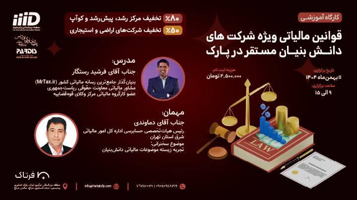 برگزاری کارگاه آموزشی قوانین مالیات ویژه شرکتهای دانش بنیان مستقر در منطقه نوآوری ایران