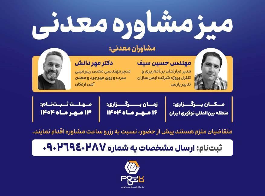 فراخوان حضور در میز مشاوره بازار معدن و صنایع معدنی مهر 1404